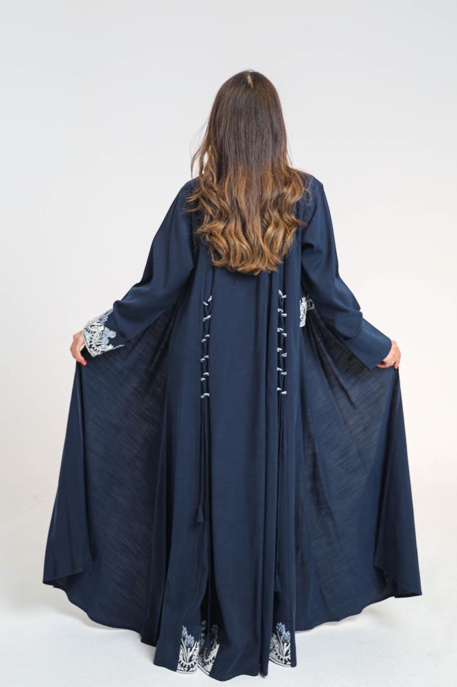 عباية مصنوعة من قماش الكريب المغسول الناعم الذي يمنحك إحساسًا بالراحة والمظهر الانسيابي الرائع. تزينها تفاصيل تطريز جميلة تضيف لمسة فنية راقية تبرز جمال التصميم بأناقة بسيطة تناسب مختلف المناسبات. اختيار مثالي لمن تبحث عن الأناقة المتجددة مع لمسة أنثوية راقية.